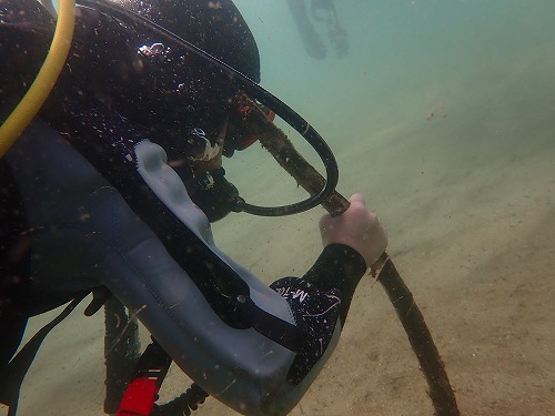 砂をまきあげてしまわないよう、中性浮力を取りながら