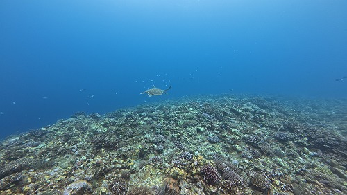 アオウミガメ、カスミチョウチョウウオ、キスジカンテンウミウシ