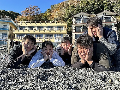 ダイビングの合間に浜辺で遊んだり、富士山を背景に記念撮影したり、